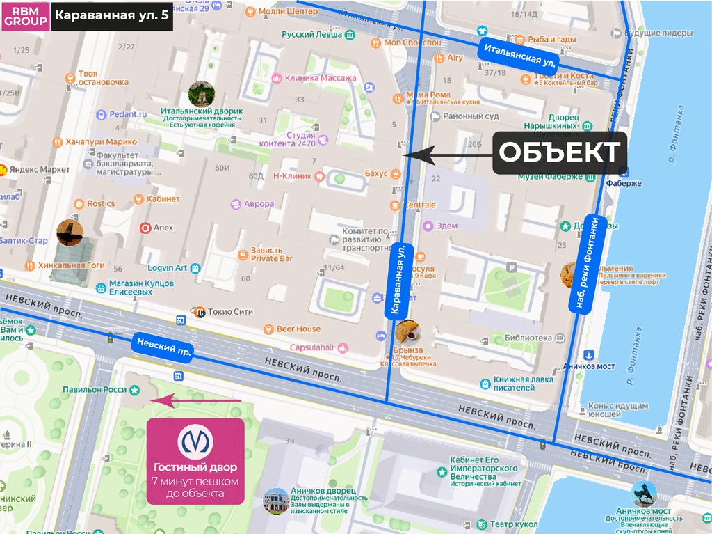 Помещение под общепит в самом центре города. Высокая проходимость. 1 минута до Невского проспекта. 7 минут до станции метро Гостиный двор.