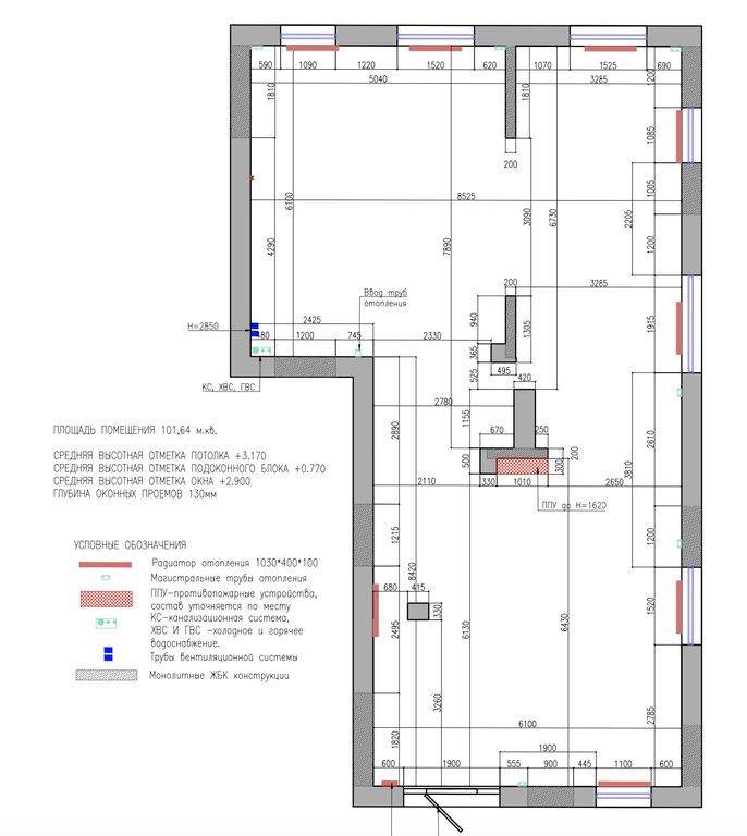 - Высота потолка: 3,4 м, что позволяет реализовать любые дизайнерские решения