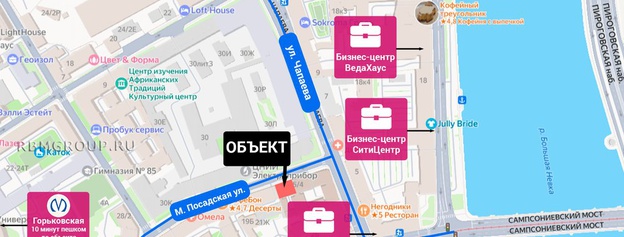 Объект находиться на пересечении одной из крупных улиц Петроградского района, Малой Посадской улицы и улицы Чапаева.