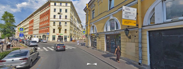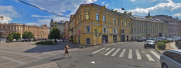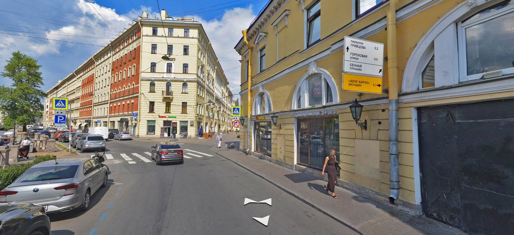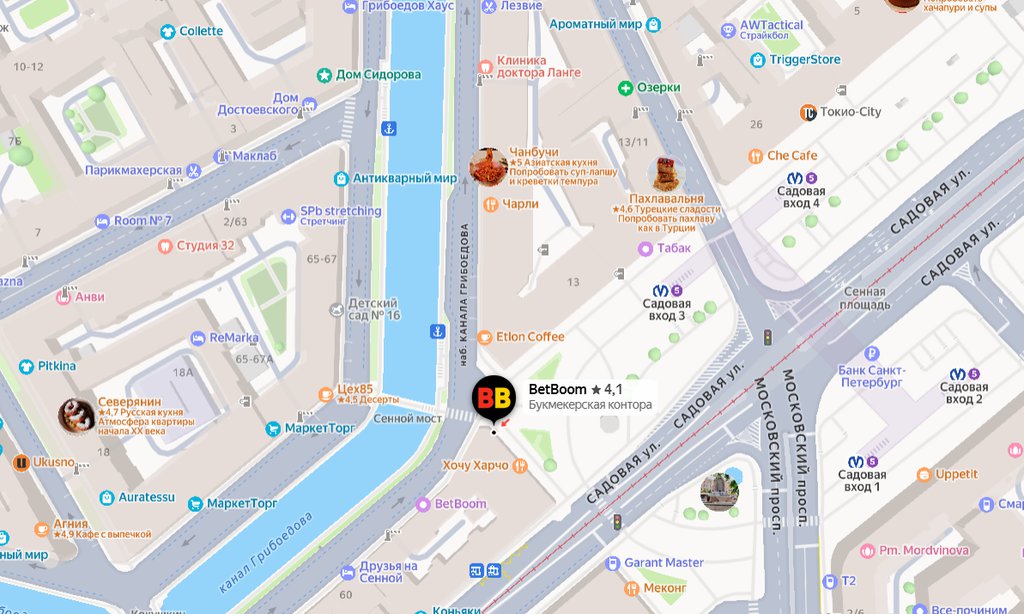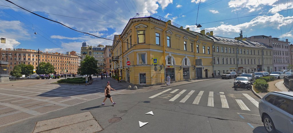 Выходит окнами на сенную площадь и на Канал Гридова.