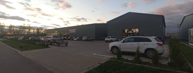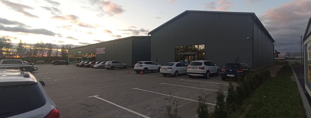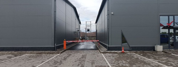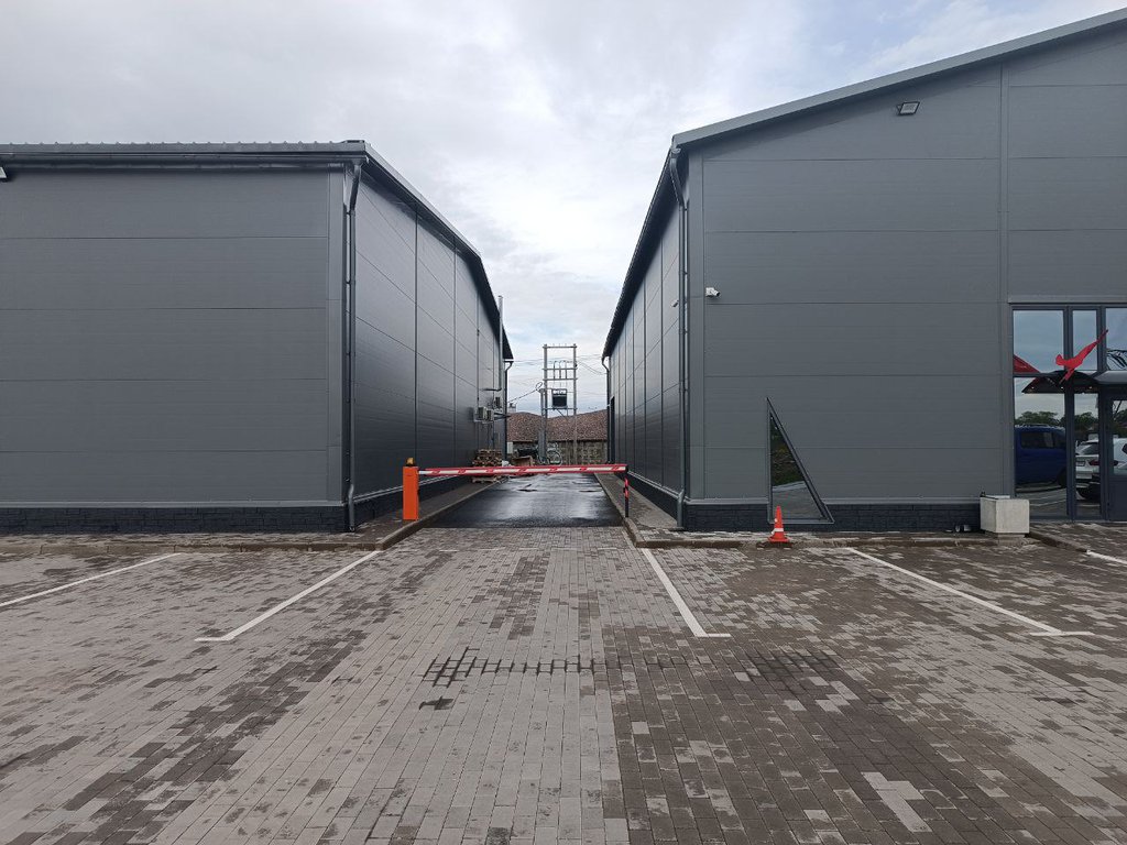 Перед зданиями большая оборудованная стоянка и зона разгрузки.
