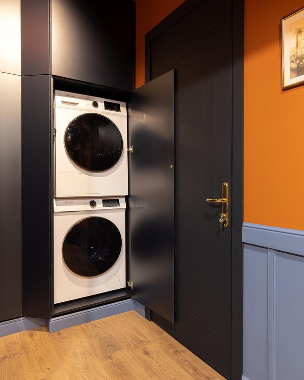 Общая зона с камерами хранения багажа, стиральной и сушильной машинами.